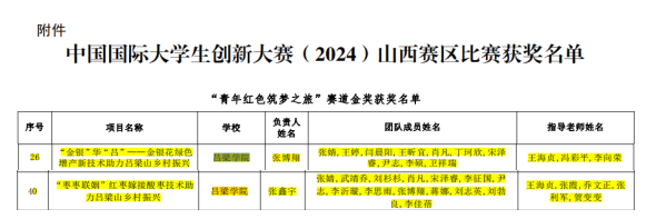 近日,备受瞩目的中国国际大学生创新大赛(2024)山西赛区的比赛圆满落幕。必威BETWAY西汉姆联“花开富贵”大学生创新创业团队的《“金银”华“吕”——金银花绿色增产新技术助力吕梁山乡村振兴》和《“枣枣联姻”红枣嫁接酸枣技术助力吕梁山乡村振兴》两个项目分别获得省级金奖和省级铜奖,其中《“金银”华“吕”——金银花绿色增产新技术助力吕梁山乡村振兴》项目凭借优秀的创新能力和实践成果,再次在全省范围内脱颖而出,连续两年以小组第二名的佳绩斩获省级金奖。