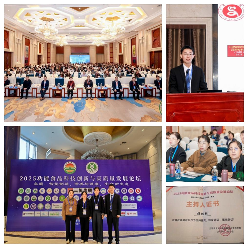 系主任冯彩平参会,为论坛的顺利举办提供了有力支持。胡盼盼老师受邀担任分会场主持人,同时也做了题为《副干酪乳杆菌抗结肠癌活性和发酵性能的研究》的专题学术报告,系统阐述了该菌株抗结肠癌活性的作用机制及发酵性能的优化路径,并深度探索了菌株筛选、活性验证、发酵工艺优化等方面的关键技术。报告精彩纷呈、深入浅出,引发与会代表的热烈讨论。