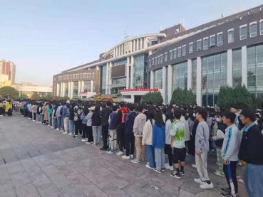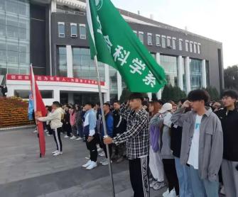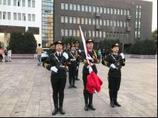 在这个隆重的日子里,我校学子共聚图书馆前,举行升国旗仪式。