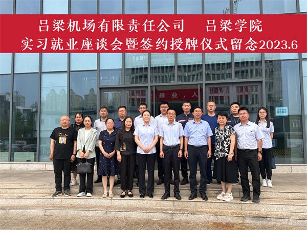 就业是民生之本。党的十八大以来,以习近平同志为核心的党中央把促进就业放在经济社会发展的优先位置。为持续开展好学习贯彻习近平新时代中国特色社会主义思想主题教育,充分利用就业黄金期,进一步落实学校访企拓岗促就业专项活动,推进我系毕业生多渠道、高质量就业,6月26日上午,我系在弘智楼一层会议室与吕梁机场有限责任公司举行共建就业实习基地合作签约揭牌仪式,吕梁机场有限责任公司党委书记、董事长、总经理王敬斌等一行12人,校党委常委、副院长刘宝琦及相关部门负责人参加签约揭牌仪式。