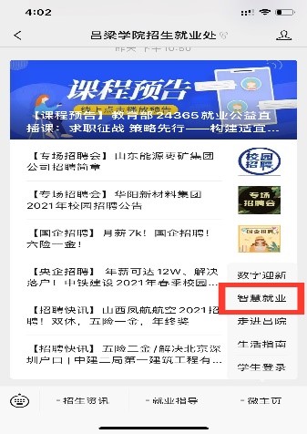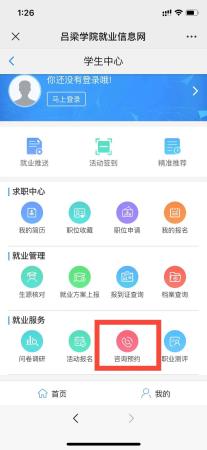 微信搜索招生就业处公众号智慧就业—我的—咨询预约。