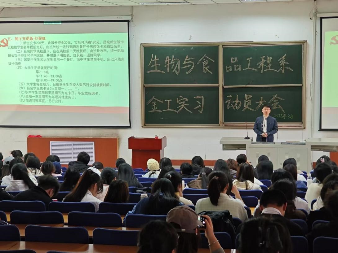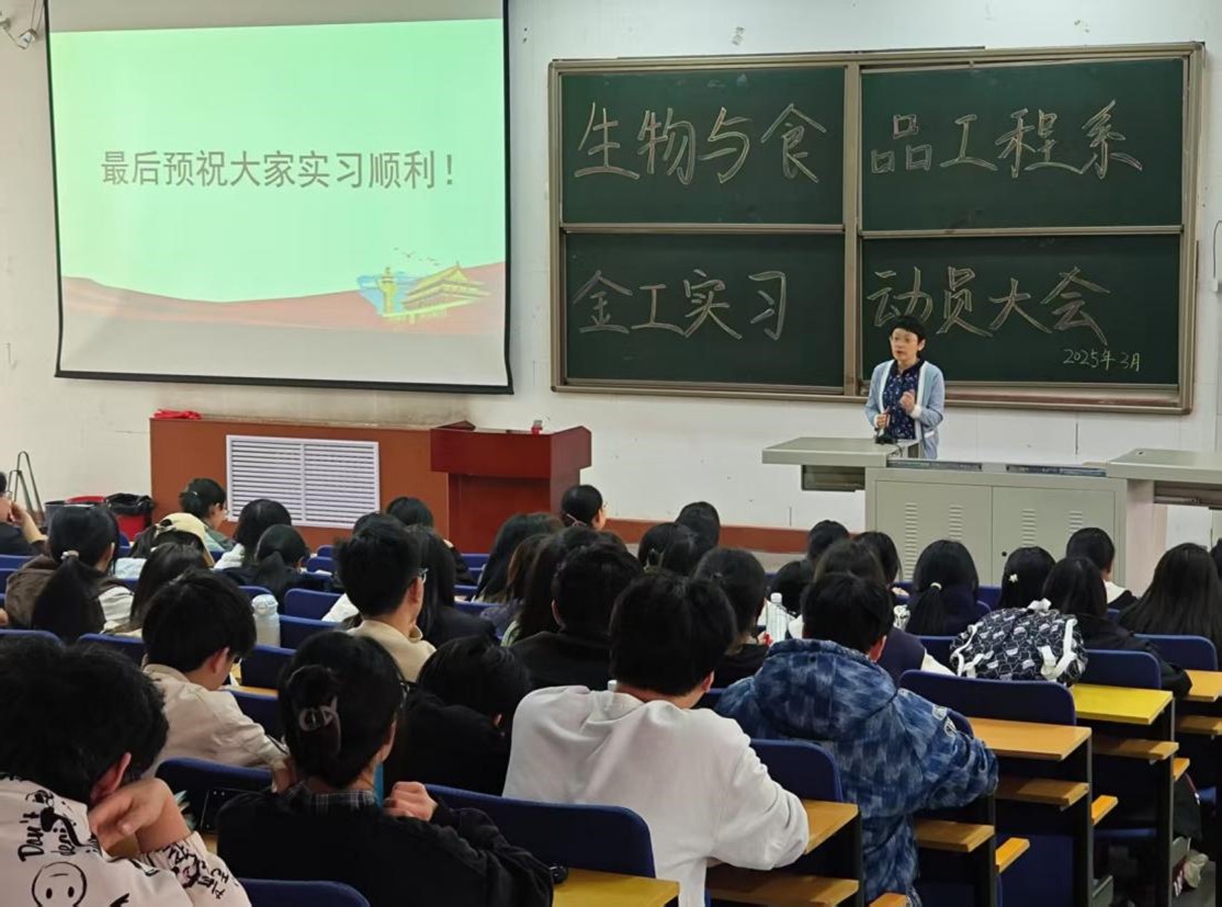 为扎实推进实践教学环节,提升学生工程素养与综合能力,2025 年3月25日,必威BETWAY西汉姆联在2C-201教室召开 2023 级金工实习动员大会。参加本次会议的有系领导,食品科学与工程、食品质量与安全专业负责人及参与实习的全体学生。