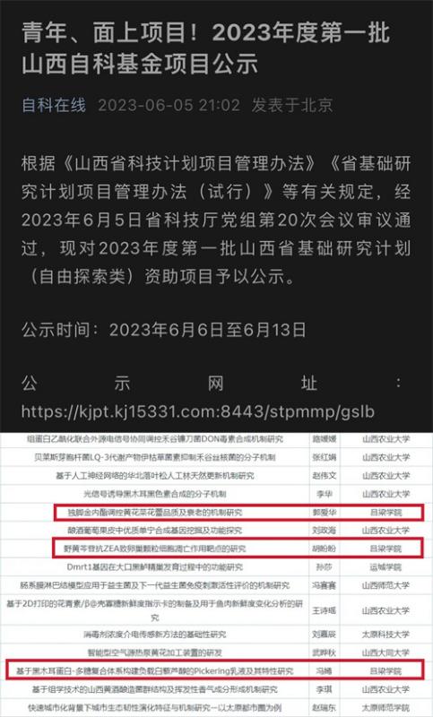 近期,山西省科技厅网站公布了2023年度第一批山西省基础研究计划(自由探索类)项目评审结果,我系共获批立项3项。我系在省自然科学基金项目申报领域取得的了历史性突破。