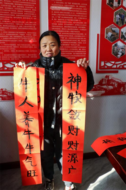这种接地气、聚人气、有活力的送文化活动得到了当地村民的热烈欢迎。大家一边欣赏一边讨论春联的意蕴,领略书法的魅力。一幅幅大红春联和福字在村里立即成了抢手货。展现了新时期农民群众奋进向上的精神风貌,抒发了迎祥纳福的美好愿望和对幸福生活的美好向往。