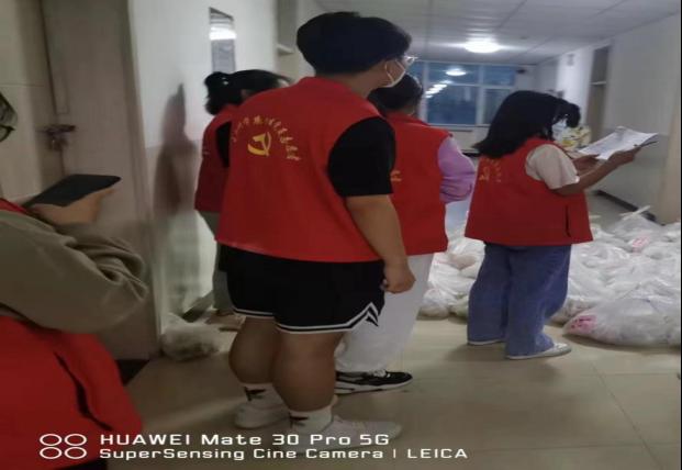 学生第二党支部党员段乐,参加公寓送餐志愿者活动,主要工作是:为静默管理中的学生发放一日三餐和生活物资等工作。她不怕脏和累,积极奋斗在第一线,为这场“抗疫”的胜利奉献自己的一份力。她说:“防控做先锋,党旗心中扬。身为一名党员,我应该站在第一线做好榜样,在这关键的时刻,我更应该锻炼自己、考验自己、成长自己,向大家展现党员的“本色”与担当。本着这样的初心,我申请加入了疫情防控志愿者队伍。