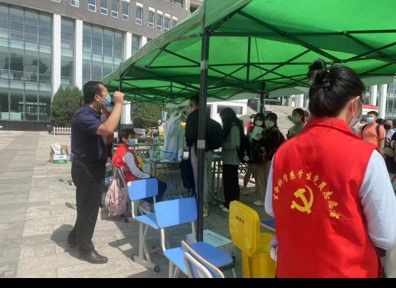 学生第一党支部党员张富恒,参加迎新志愿者活动,主要工作是:引导新生、搬运行李、宣传防疫政策等工作。他在迎新抗“疫”中默默付出,尽心维持现场秩序,做好防疫工作。他说:“我们是党员,要勇于担当、甘于奉献、践行志愿精神。党员要把初心、使命体现在防控疫情的行动上和成效中,成为带头配合学校做好抗击疫情工作的典范”本着这样的初心,我申请加入了疫情防控志愿者队伍。