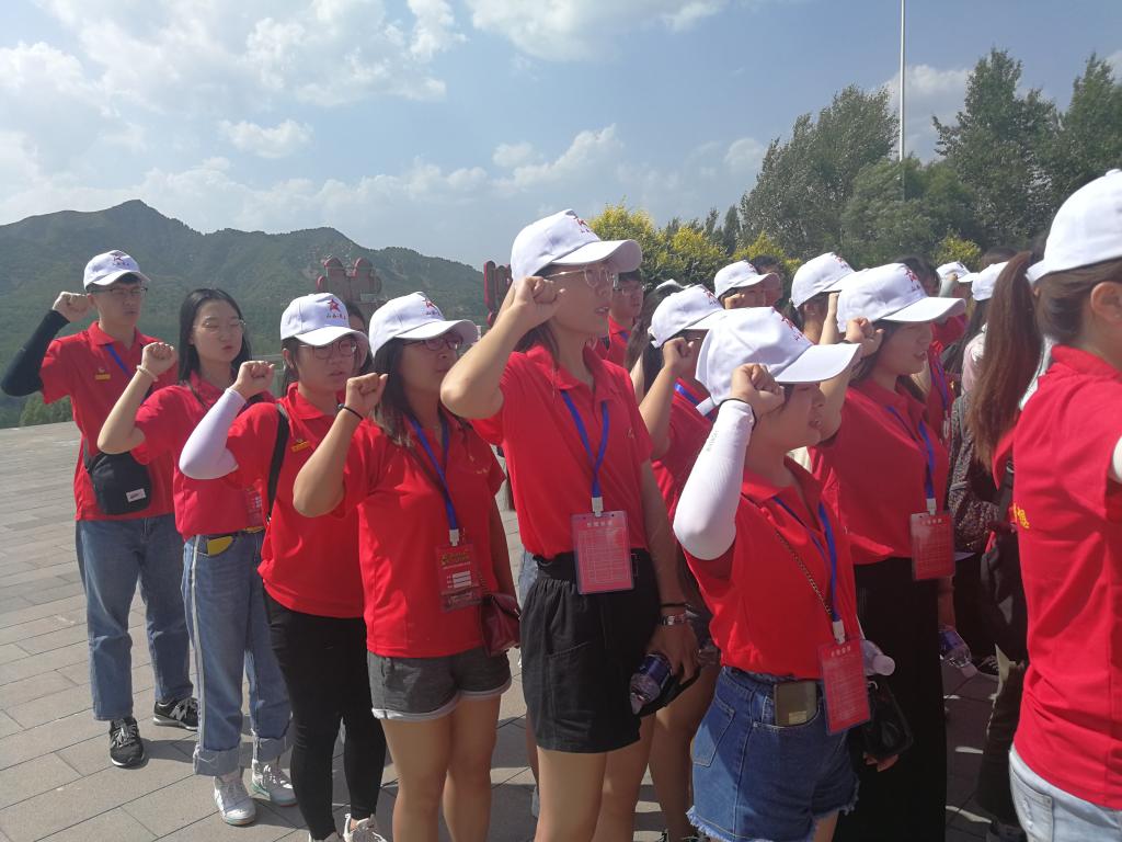 图为实践队员在平型关大捷纪念馆前重温入团誓词。中国青年网通讯员 王靖波 摄