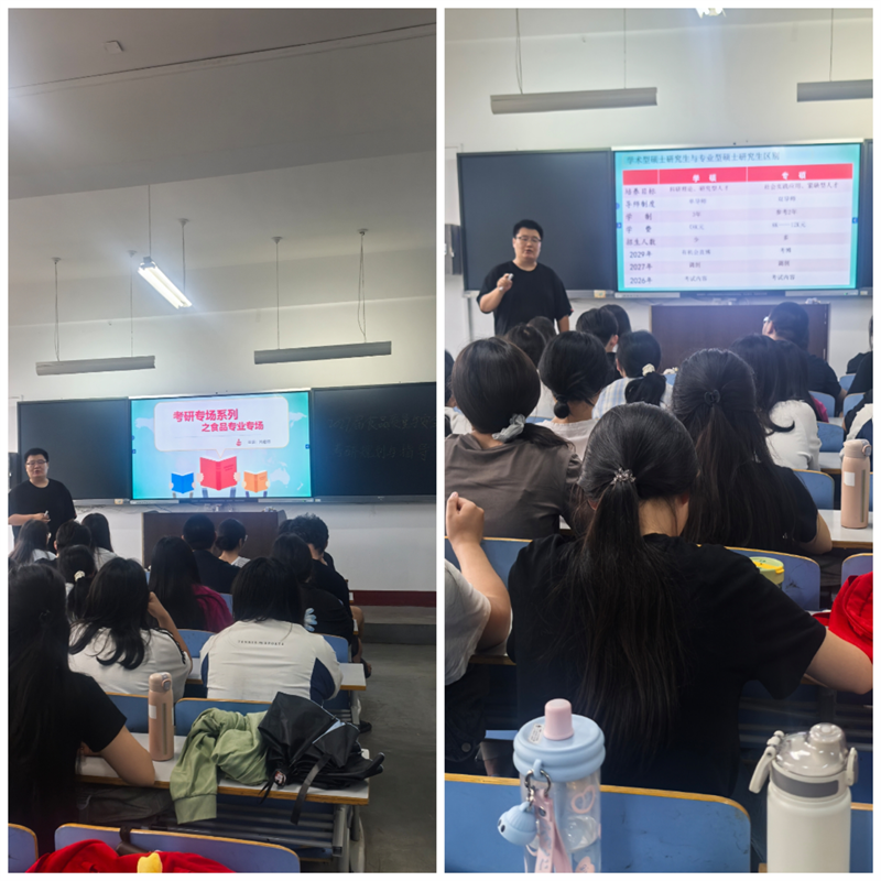 随后,尚老师聚焦备考核心环节,给出针对性指导。针对公共课,建议学生从现在起制定“基础夯实-强化突破-冲刺模拟”三阶段计划,英语注重词汇积累与真题训练,政治关注时政热点与高频考点;针对专业课,重点梳理《食品化学》《食品安全学》等核心课程考点,推荐参考书目与行业前沿期刊,鼓励学生提前了解目标院校导师研究方向,为复试积累优势。