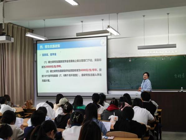 在宣讲会的重要环节,安馨老师对2026年研究生招生政策进行了全面细致的解读。她从报考条件、考试科目、招生名额等学生最关心的问题入手,提供了详实的报考指导。